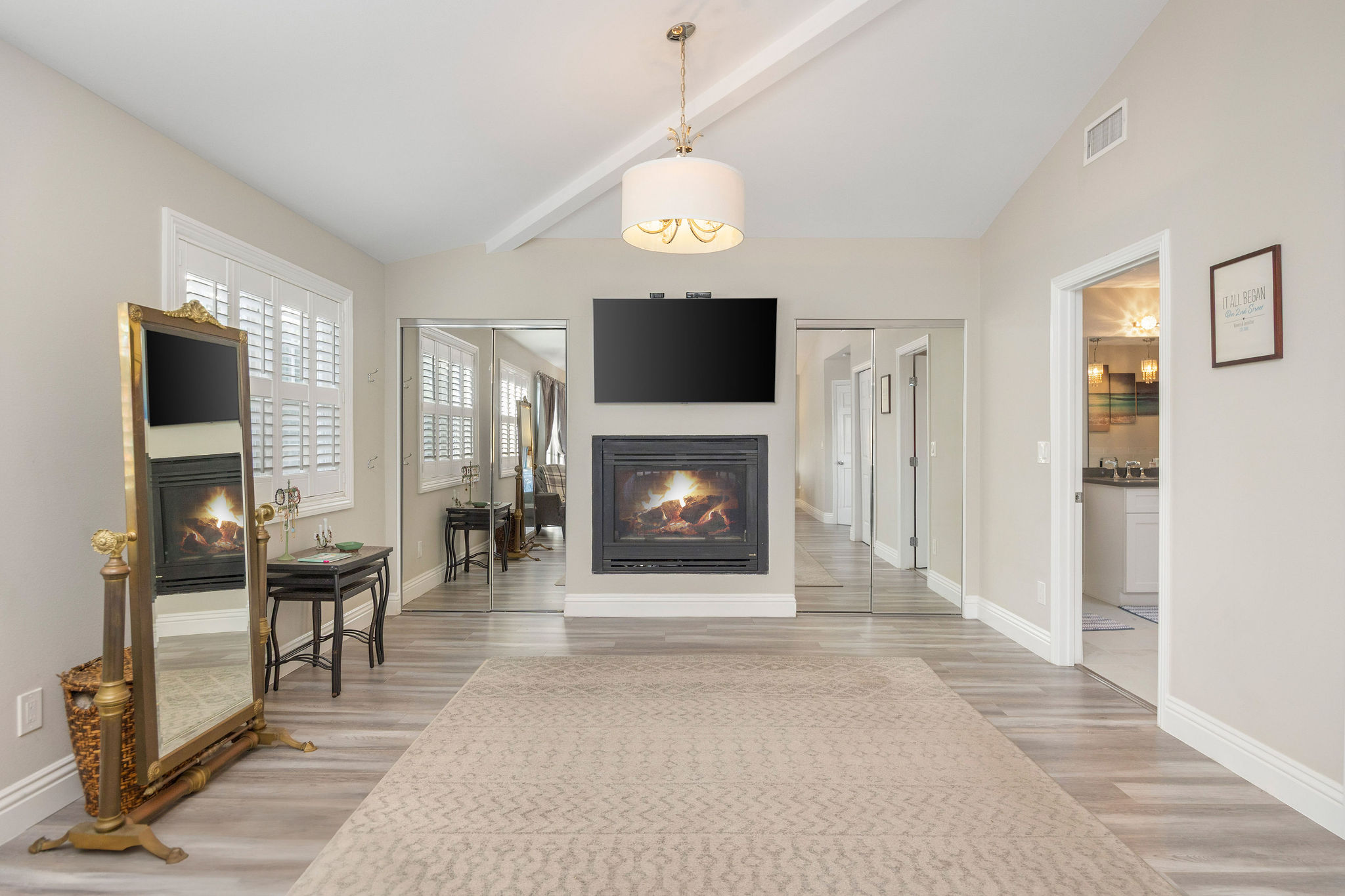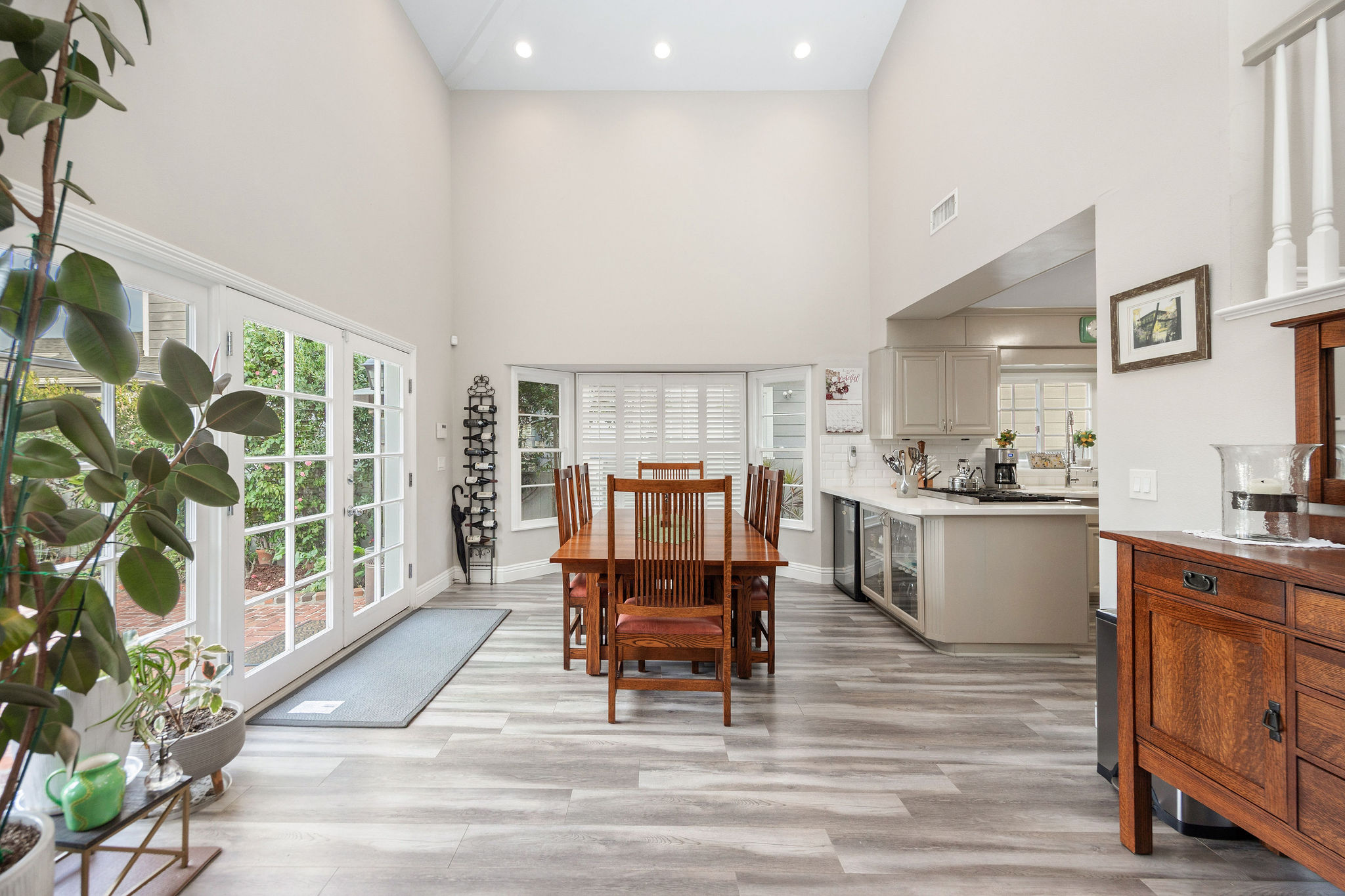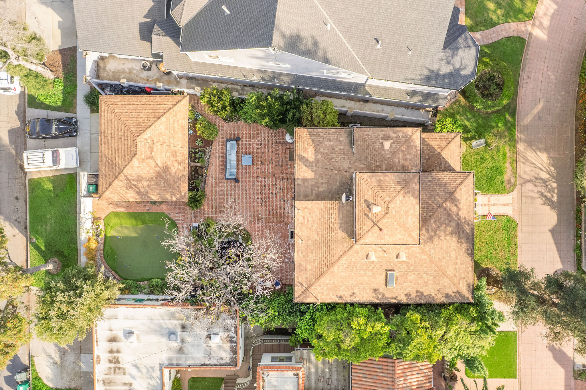 Welcome to 30 La Linda Drive, an incredibly spacious, yet private retreat tucked quietly away in the ever-so coveted gated community of La Linda Drive. For those of you fortunate enough to have experienced the privacy and surrealism behind the gates of La Linda, you can attest to the instantaneous change of surroundings from just outside. As you make your way past each custom home, down the quaint winding road, through mature greenery, you land outside a beautifully kept, yet subtle two story home, simply addressed “30”. Just inside the front doors you find a formal living room, perfectly curated and blended seamlessly against the simple yet versatile finishes you’ll notice throughout. Off the first formal living room, you make your way into a well positioned kitchen with Viking appliances and bookended bar tops which make for the perfect place to congregate. Heading back, you land in an expansive dining area with vaulted ceilings and french doors tying in the expansive space just beyond. Before you head out back, you’ll have to spend some time admiring the second living room, perfect for privacy or your afterwork decompression. Heading back toward the front door, you find not only a renovated and spotless 3/4 bathroom, but also a first floor bedroom that can easily double as a downstairs en suite. Heading upstairs, overlooking the expansive two story dining room ceilings, you’ll find three bedrooms, with the star of the show being an en suite that may rival any others in close proximity. Accompanied by a patio for morning coffee overlooking the private road of La Linda and a primary bathroom with ample space for comfort and convenience, the only thing you’ll need is an alibi for taking too long enjoying the freestanding bathtub with natural light from above. Along either side of this expansive primary ensuite are two well positioned bedrooms, a renovated full bathroom and separate laundry room with additional storage. Now that you’ve processed the incredibly spacious, practical interior of 30 La Linda, it’s finally time to head back out those French doors to the generously sized backyard tied together by a mature produce garden, a thought out koi pond, multiple spaces to entertain and even a putting green. Take a second, take it all in, then head into the full two car garage with easy access and consistent street parking along Roosevelt just behind. If the exclusivity and privacy of La Linda  doesn’t get you, the spacious and move-in ready details of this home just might. Just don’t sell the neighborhood short before you check out the communal park, generous guest parking and all of the lure that comes with owning a small piece of history here.