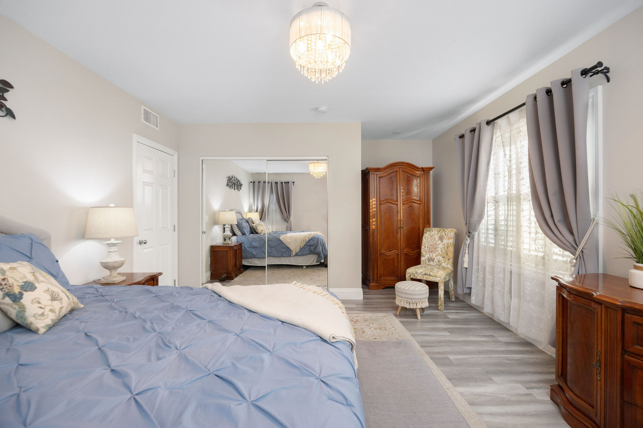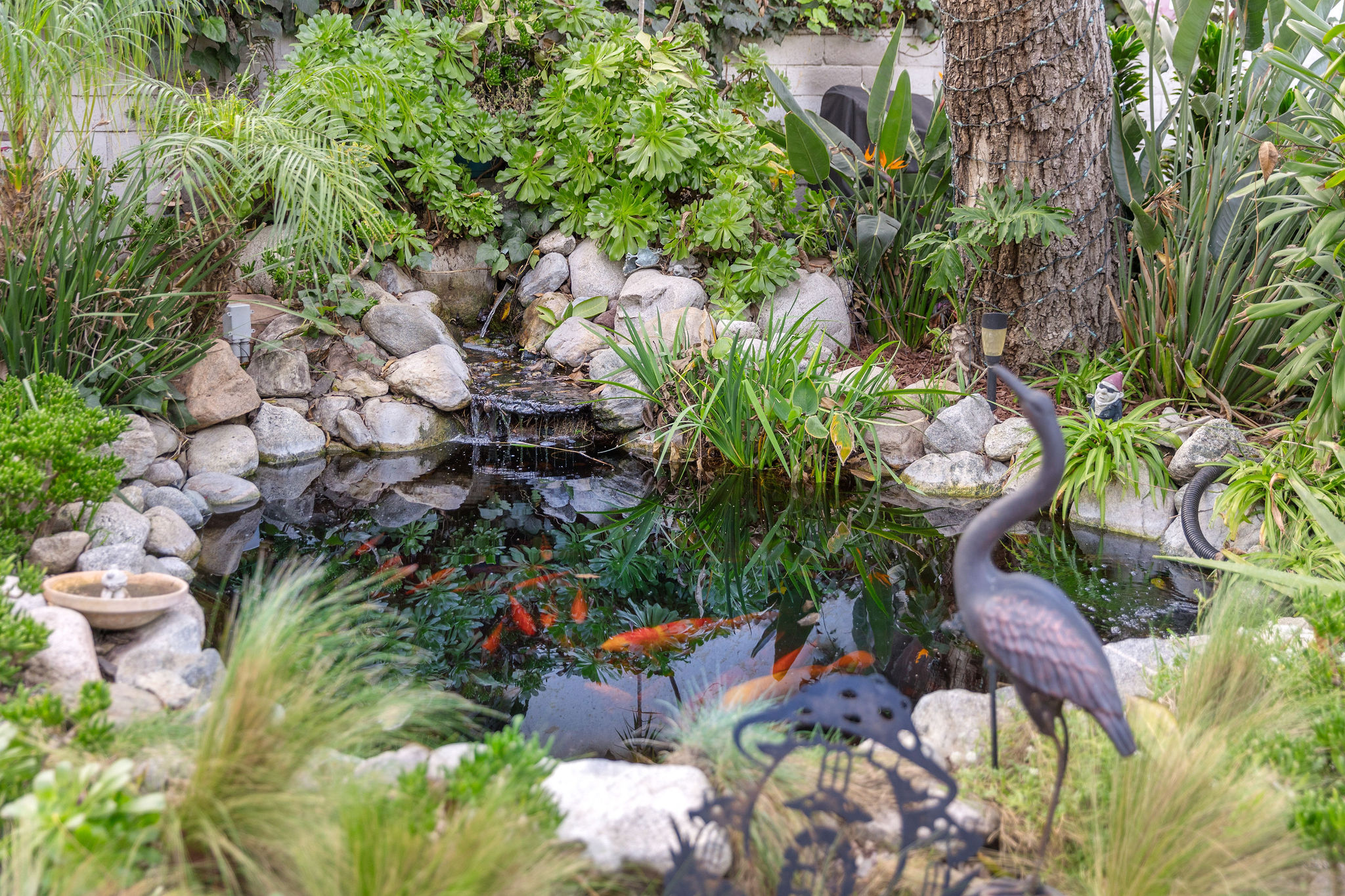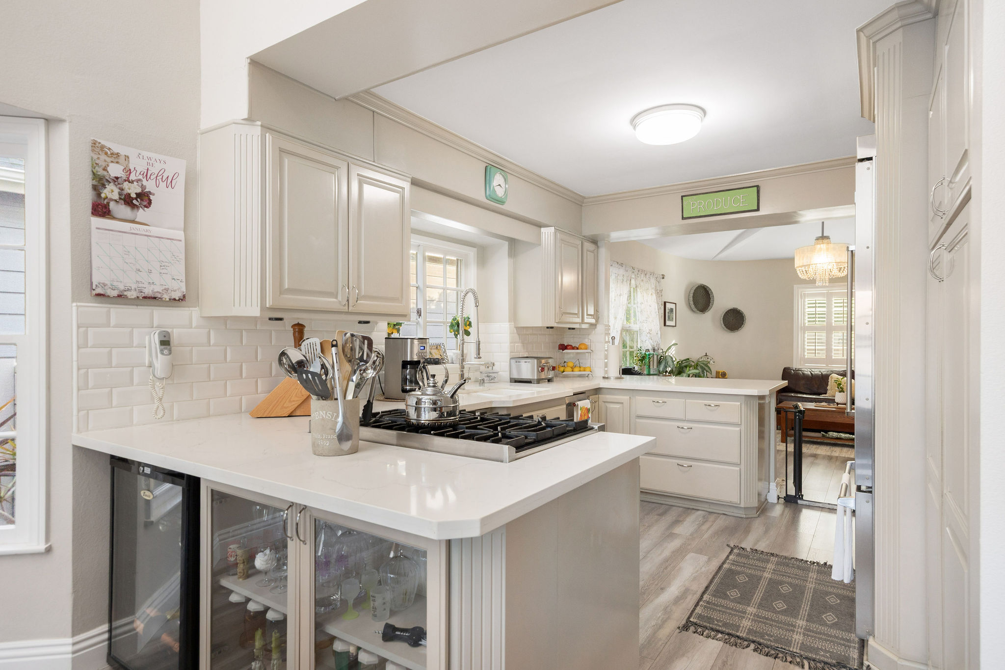 Welcome to 30 La Linda Drive, an incredibly spacious, yet private retreat tucked quietly away in the ever-so coveted gated community of La Linda Drive. For those of you fortunate enough to have experienced the privacy and surrealism behind the gates of La Linda, you can attest to the instantaneous change of surroundings from just outside. As you make your way past each custom home, down the quaint winding road, through mature greenery, you land outside a beautifully kept, yet subtle two story home, simply addressed “30”. Just inside the front doors you find a formal living room, perfectly curated and blended seamlessly against the simple yet versatile finishes you’ll notice throughout. Off the first formal living room, you make your way into a well positioned kitchen with Viking appliances and bookended bar tops which make for the perfect place to congregate. Heading back, you land in an expansive dining area with vaulted ceilings and french doors tying in the expansive space just beyond. Before you head out back, you’ll have to spend some time admiring the second living room, perfect for privacy or your afterwork decompression. Heading back toward the front door, you find not only a renovated and spotless 3/4 bathroom, but also a first floor bedroom that can easily double as a downstairs en suite. Heading upstairs, overlooking the expansive two story dining room ceilings, you’ll find three bedrooms, with the star of the show being an en suite that may rival any others in close proximity. Accompanied by a patio for morning coffee overlooking the private road of La Linda and a primary bathroom with ample space for comfort and convenience, the only thing you’ll need is an alibi for taking too long enjoying the freestanding bathtub with natural light from above. Along either side of this expansive primary ensuite are two well positioned bedrooms, a renovated full bathroom and separate laundry room with additional storage. Now that you’ve processed the incredibly spacious, practical interior of 30 La Linda, it’s finally time to head back out those French doors to the generously sized backyard tied together by a mature produce garden, a thought out koi pond, multiple spaces to entertain and even a putting green. Take a second, take it all in, then head into the full two car garage with easy access and consistent street parking along Roosevelt just behind. If the exclusivity and privacy of La Linda  doesn’t get you, the spacious and move-in ready details of this home just might. Just don’t sell the neighborhood short before you check out the communal park, generous guest parking and all of the lure that comes with owning a small piece of history here.
